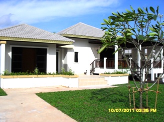 Vi har fått inspiration av den japanska designen som ni ser på de väl tilltagna taken och de skarpa men ändå mjuka konturerna runt huset. Det är detaljerna som ger huset dess speciella karaktär. Detta i samverkan med de större tomterna gör att huset harmonierar väl med den thailändska naturen.
